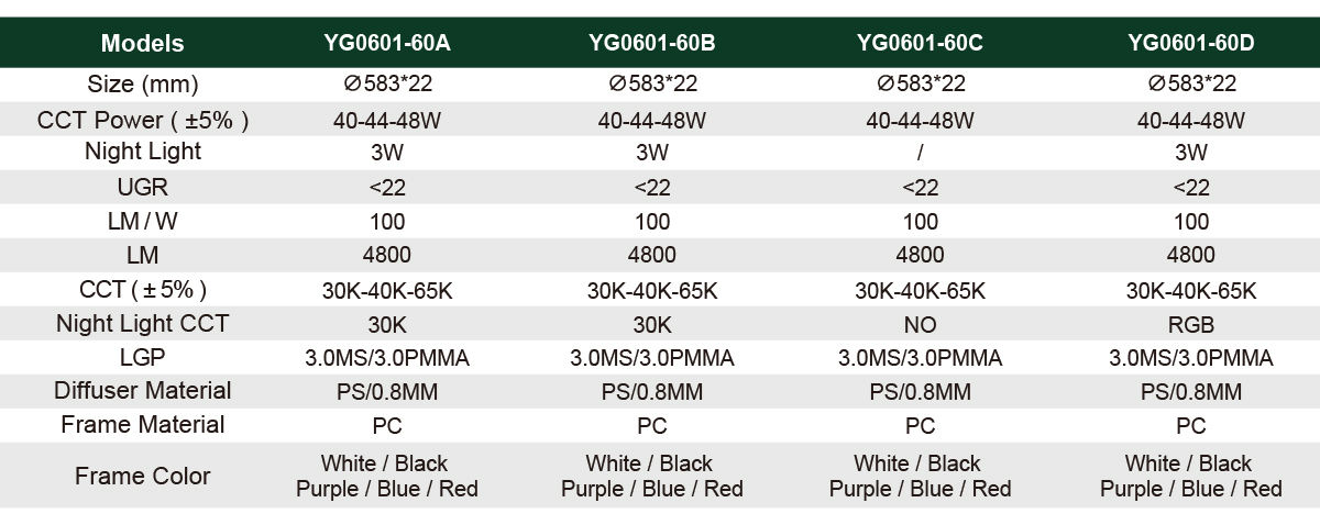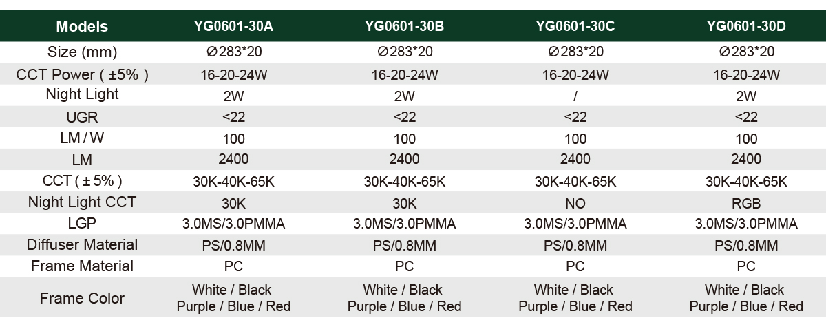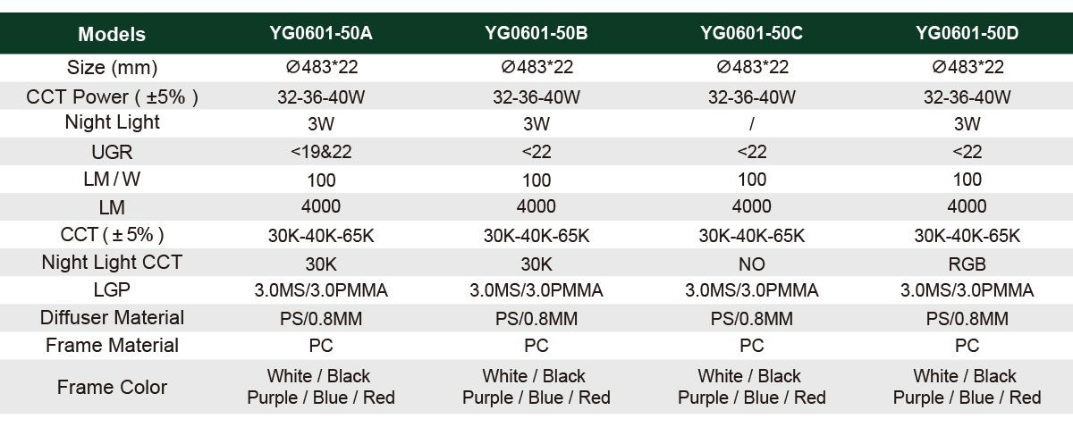 LED ceiling light in all its forms-most of the time plays a secondary role of attention but attach great importance to the general lighting of a room. lt puts your room in best lighting effect by innovative lighting solutions and design.YG0601 ceiling light series has ceiling installation, embedded installation,suspension wire installation, and suspension rod installation, solving the diversified installation needs of customers Humanized function mode.