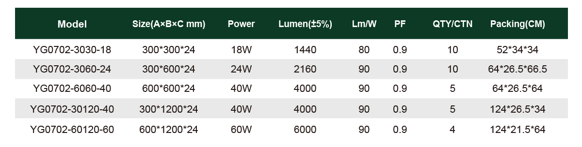 YG0702 panel light is Edge light, adopting MS2.0 LGP which produces uniform light and high lumen output, good quality SMD with 100lm/W. It can fits seamlessly into any work place, surface mounted.