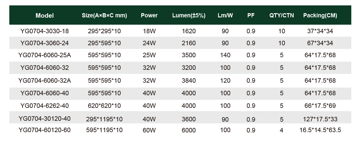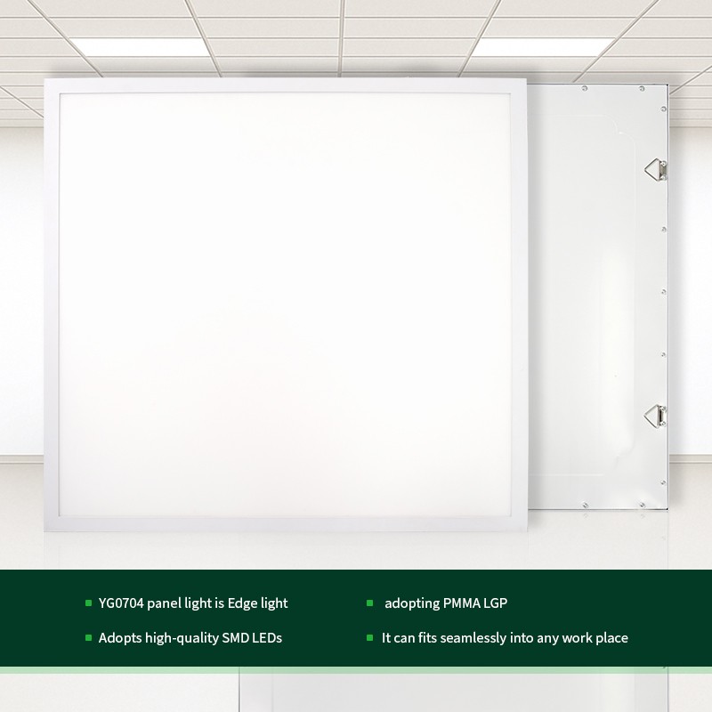 YG0704 panel light is Edge light, adopting PMMA LGP which produces uniform light and high lumen output, good quality SMD with 120lm/W. It can fits seamlessly into any work place, Recessed / Pendant installation.
