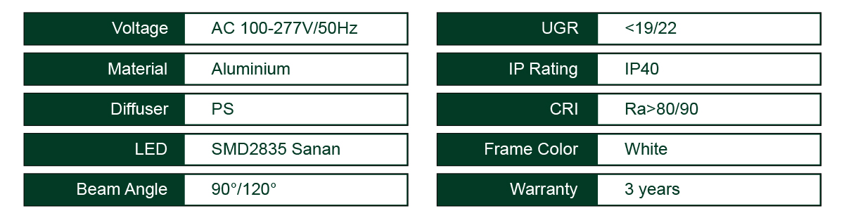- AC100-277V/50Hz