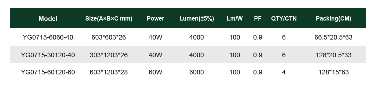 YG0715 backlit panel is ultra slim design with external isolation drive, non isolation integrated drive optional, adopts high quality SMD LED with optical lens to provide a uniform light effect, high efficiency, the absence of LGP design makes this panel more cost effective compared with normal edge-lit panel. UGR<19/22, and CCT switchable are available. Recessed / Pendant installation, highly favored by south and north American countries.