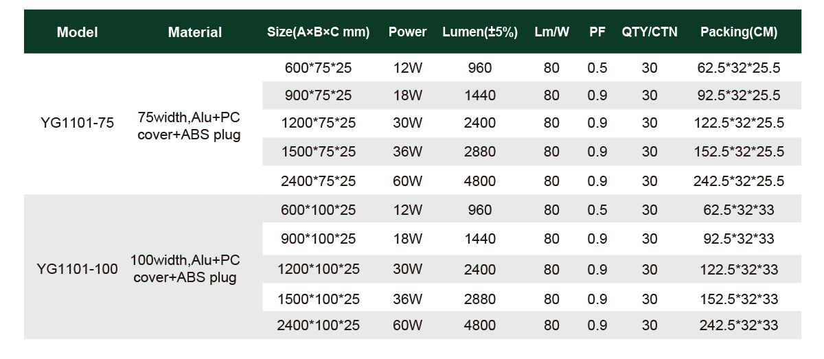 The YG1101 Linear Batten is a full-size slim LED lighting solution engineered for superior performance in commercial and industrial applications.
